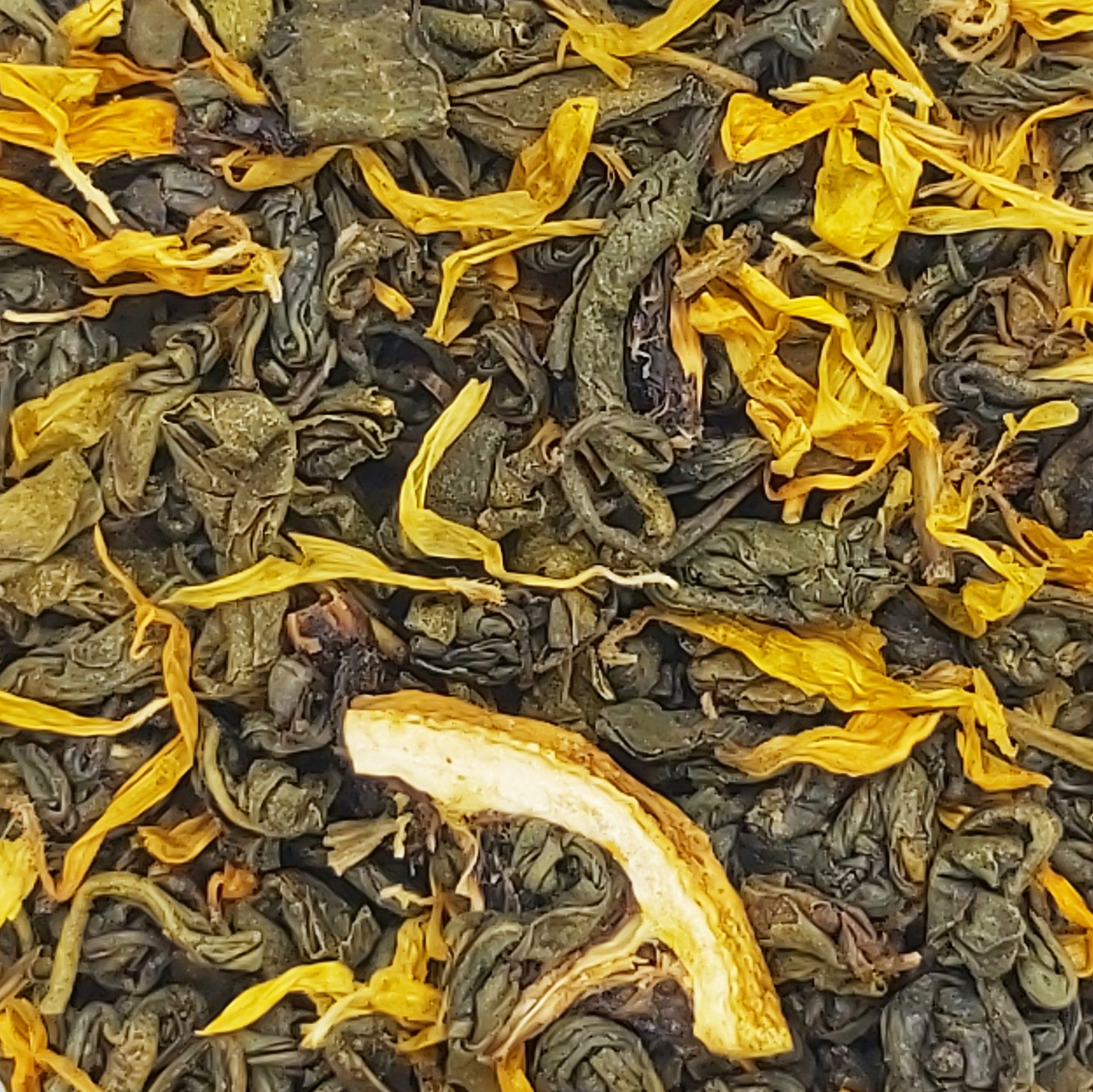 Green tea, Lime and Lemon pieces, Calendula and Sunflower petals, Natural flavours