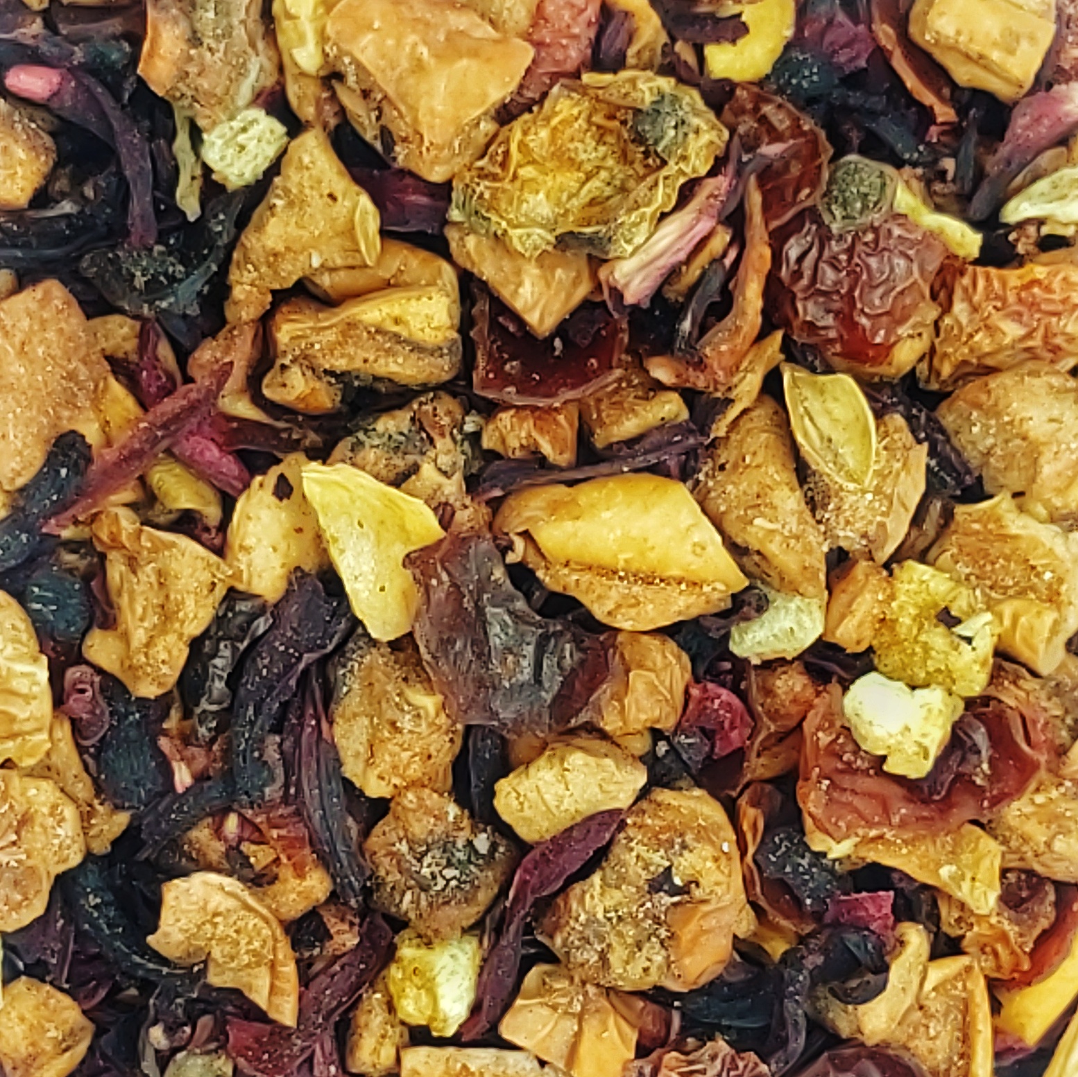 This blend combines the sweet, juicy essence of ripe strawberries with the tangy zest of kiwi, creating a perfect harmony of fruity goodness. Enhanced with a colourful mix of apple and hibiscus pieces, each cup bursts with a lively, invigorating taste.